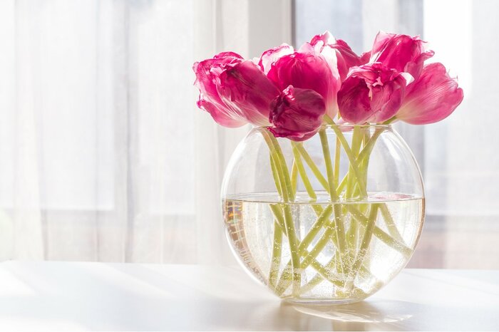 水中の雑菌は切り花の大敵。毎日水を替えて、水を常に清潔に保つようにしましょう。気温が高くなってくると、雑菌が繁殖しやすくなるので注意します。