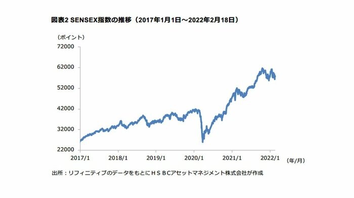 インド株式市場は引き続き高値圏で推移しているが、足元、新型コロナウイルスのオミクロン株の出現、米国の早期金融引き締め観測、地政学的リスクの高まりなどから、資金流出が見られた(2月18日現在)。