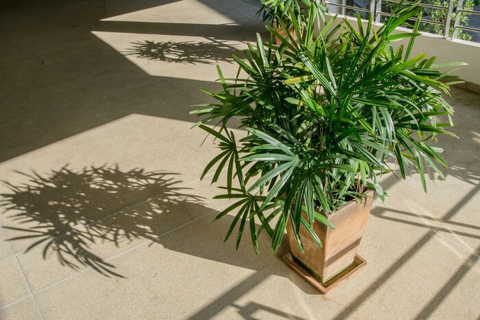 シュロチクは大型でも和洋問わず、様々なインテリアに合わせやすい観葉植物です。耐陰性があるので半日陰で生育が可能で、日当たりが悪くても育ちます。直射日光は避けるようにしましょう。
