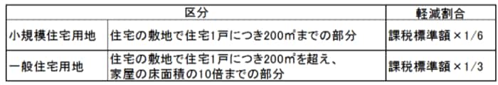 中古物件の土地については、マイホームや賃貸マンションの居住用部分に関して「住宅用地の特例」があり、次のように課税標準額が軽減されます。