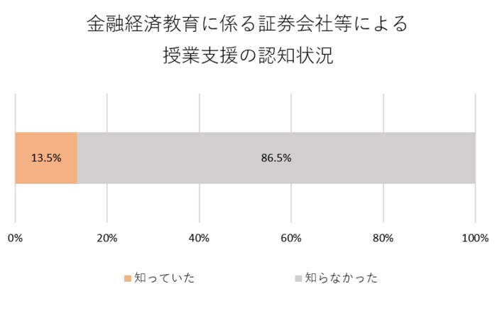 学校での資産形成等に関する授業を知らない人は79.7%、証券会社等による授業支援を知らない人は86.5%にのぼります。