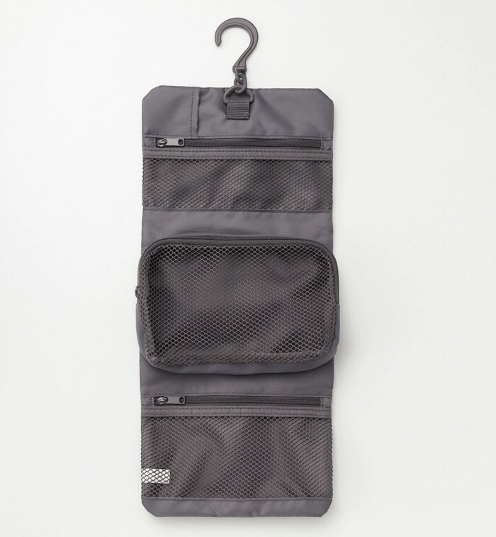 洗面所やバスルームのフックにかけて使うことができる便利なポーチ。中には着脱できるメッシュ素材のポーチもついているので、取り外して持ち運ぶことも可能です。普段使いからトラベルポーチとしても活用できそうです。