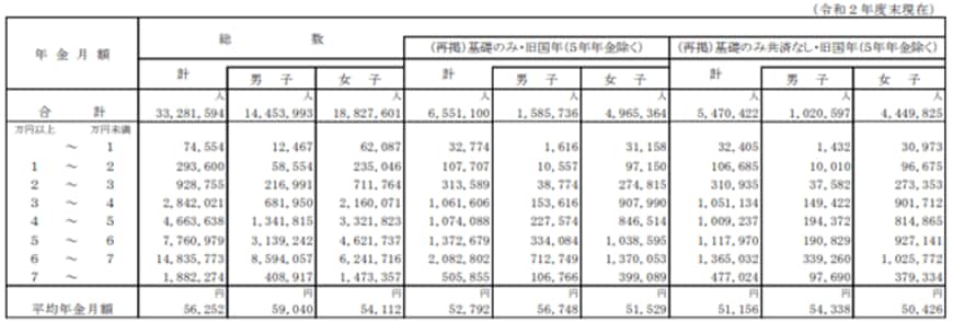 国民年金の平均月額や月額ごとの受給者人数を見ていきましょう。