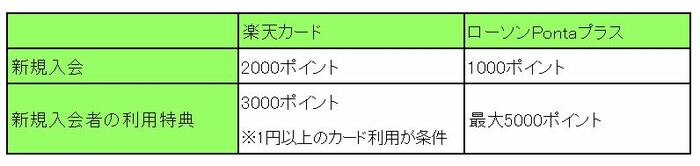 楽天カードとローソンPontaプラスの新規入会特典は次のとおりです。
