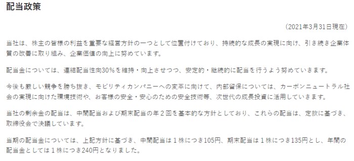 株式分割調整後のトヨタ自動車の2021年3月期の期末配当は27円で、2022年3月期の中間配当は24円でした。