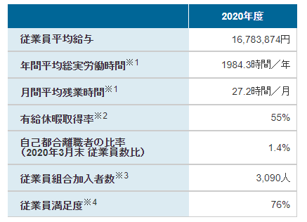 三菱商事の最新の人事データによると、2020年度の年間平均総実労働時間は1984.3時間となりました。