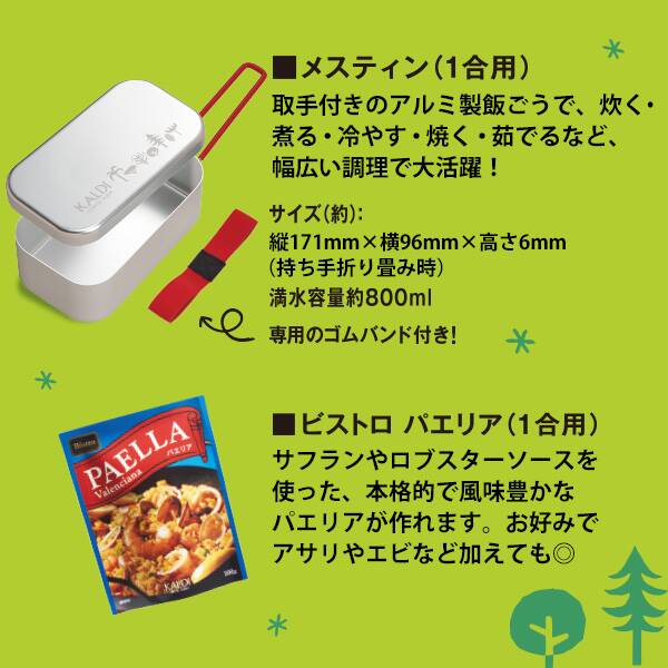 最近のアウトドアブームの影響もあり、キャンプやアウトドアで人気のメスティン。今回、カルディではそんなメスティンとパエリアの素をセットにした「メスティン de ごはんセット」を販売しました。