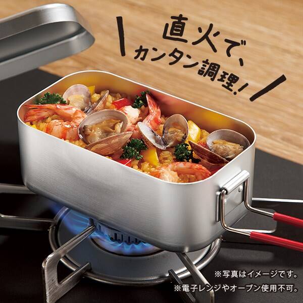 メスティンとは、直火で調理することができるアルミ製の飯盒のこと。「炊く」だけでなく、「煮る」「焼く」「茹でる」「冷やす」など、食事からデザートづくりまで活躍してくれる優れものです。ゴムバンド付きなのでお弁当箱としても使えます。