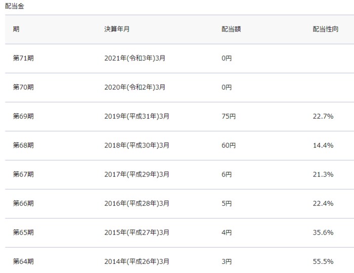 ただ、ANAの2021年3月期の期末配当は0円でした。