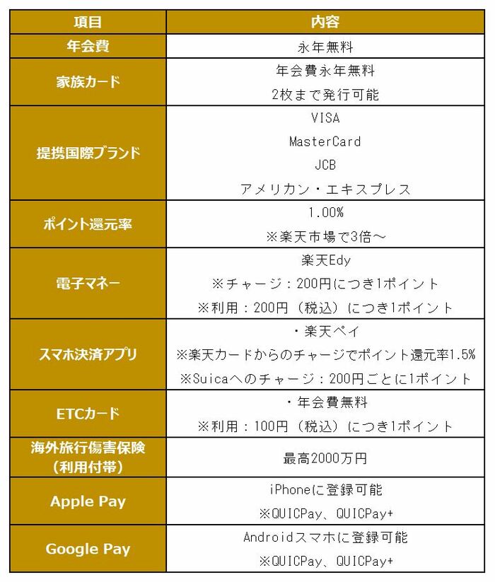 さいしょに、楽天カード・JCBカードWの基本スペックを見ていきます。