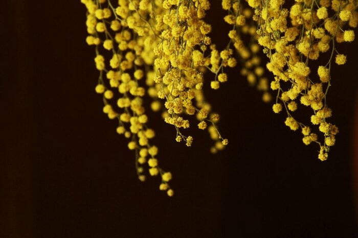 ミモザは乾燥しやすい花で、初心者でも簡単にドライフラワーが作れます。キレイな花がたくさん咲いている枝を選んでスワッグやリースを作ってみましょう。