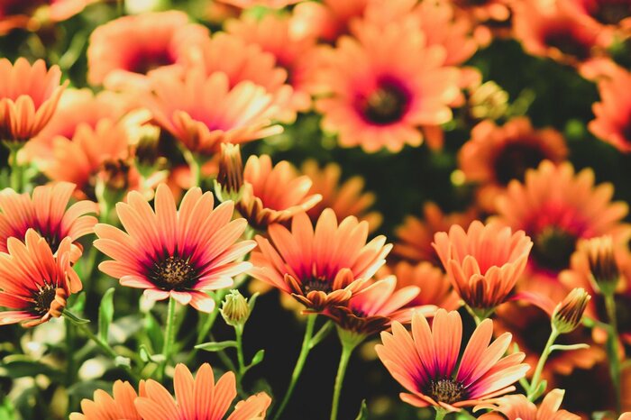 種類も豊富なオステオスペルマムは、アフリカ原産のキク科の多年草。花期が長く、春と秋に次々と花を咲かせます。色や形、咲き方もバラエティに富んでいるので、お気に入りの品種が見つけやすいかもしれません。
