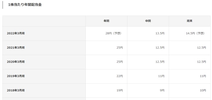 三菱UFJの2021年3月期の期末配当は12.5円、2022年3月期の中間配当は13.5円でした。