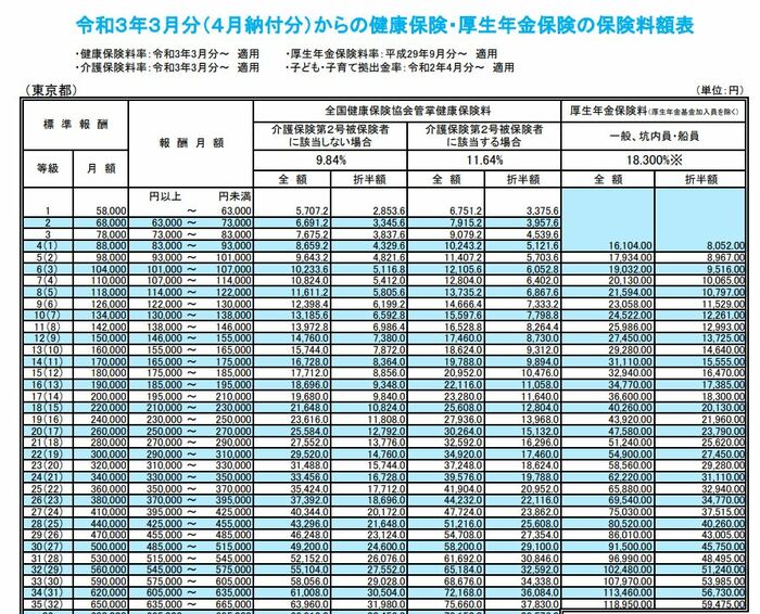 例えば東京都の協会けんぽに加入している例をみてみましょう。