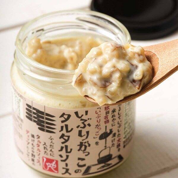 吊るしていぶした大根を米ぬかに漬けた秋田名物の「いぶりがっこ」をふんだんにいれたタルタルソースです。サラダやフライにかけたり、温野菜のディップにも。お好みでアレンジできる人気ソースです。