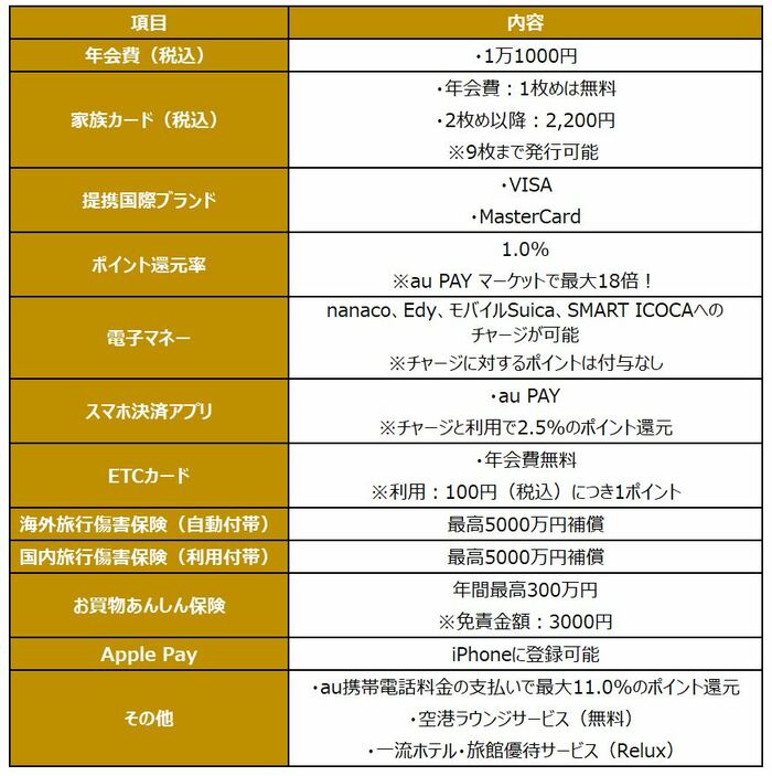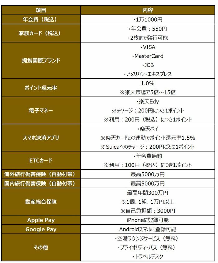 「楽天プレミアムカード・au PAY ゴールドカード」基本スペックを確認