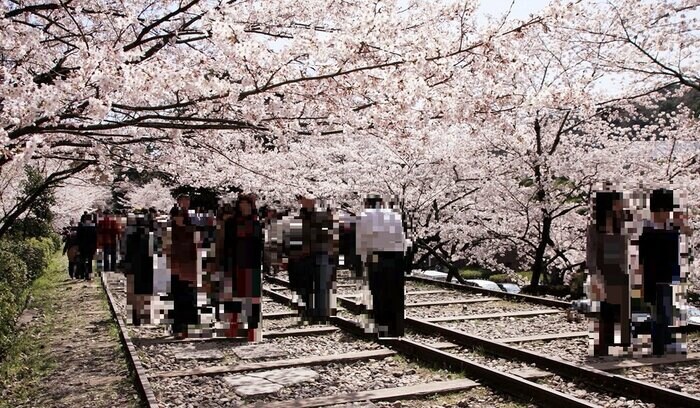 蹴上インクラインは京都市左京区の南禅寺近くにあります。インクラインとは昔琵琶湖疎水で使う船を台車に乗せて運んだ線路のこと。廃線跡のレトロな雰囲気にサクラがよく似合います。