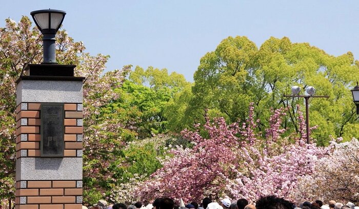 大阪市北区にある造幣局本局構内には八重桜の並木道があります。道の両側にある八重桜が満開になると圧巻の美しさ。開花期間だけ一般公開され敷地内を散策することができます。(令和4年度はネット予約で先着順)