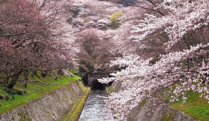 琵琶湖疎水は滋賀県大津市のサクラの名所です。琵琶湖疎水は琵琶湖の水を京都へ供給するために造られた運河。両岸に植えられた約200本の桜並木がキレイです。