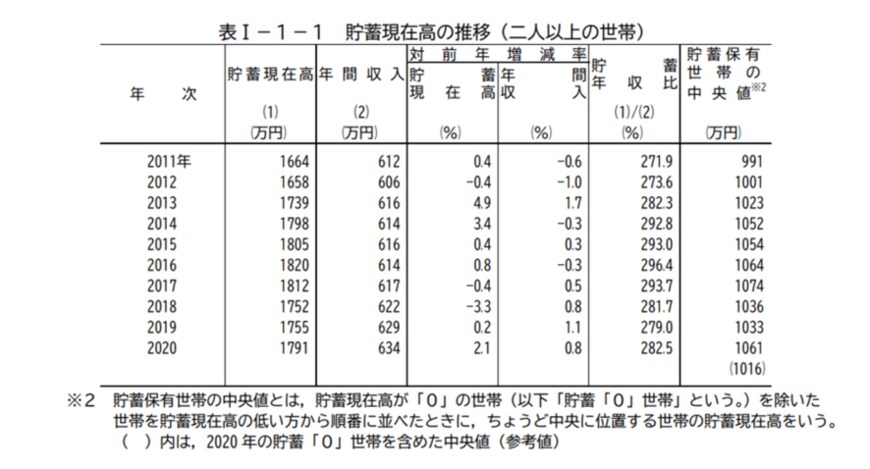 先ほどの総務省調査に戻ると、中央値である1061万円が実態を表す数字になりますね。