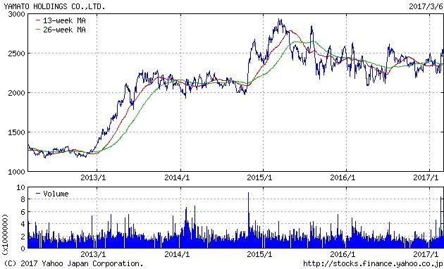 2017年3月7日の日本経済新聞は、ヤマトホールディングス(9064)の主要子会社であるヤマト運輸が2017年9月までをめどに値上げを行う方針だと報じています。また、これに先立ち、荷主との価格交渉次第では個数抑制をするとも報道されていました。