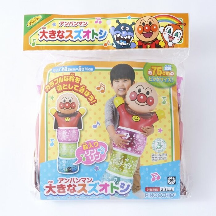 アンパンマンの鈴落とし玩具です。空気を入れると全長75cmの大きさになります。小さなお子さんも楽しく遊べるアイテムです。