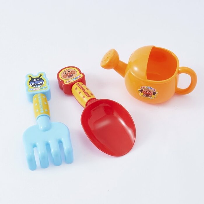 ・素材:(スコップ・クマデ)ポリプロピレン、合成ゴム(ジョーロ・砂型)ABS樹脂(バケツ)ポリプロピレン、ポリエチレン(収納袋)ポリ塩化ビニル樹脂、ポリプロピレン、ポリエステル