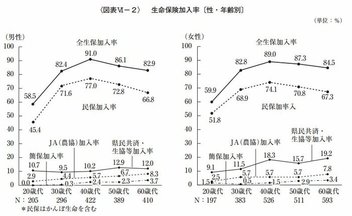 全生保の生命保険加入率「40~50歳代」が男女ともに最多
