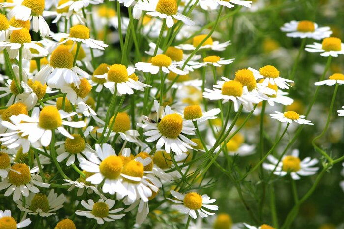 白と黄色の小さな花が可愛らしく、庭やベランダを華やかに彩るでしょう。乾燥させてハーブティーに使われることも多く、甘いリンゴのような香りが人気です。