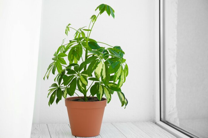 丸い葉がたくさん茂り、オフィス装飾としてもよく見かけるシェフレラ。カポックと呼ばれることもあります。小さいサイズから大きいサイズまで出回っているので、部屋に合わせたサイズを選びやすいでしょう。