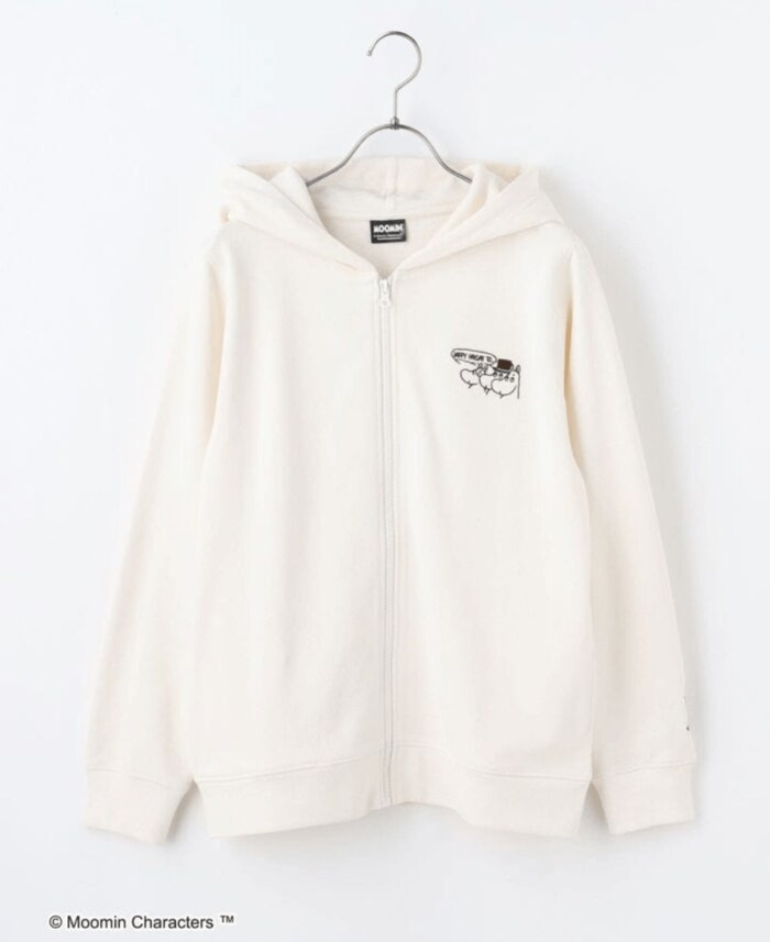 ムーミンやその仲間たちが、ワンポイント刺繍されたジップパーカー。5つのカラーによって、異なるキャラクターデザインを左胸と袖口にさりげなく施しています。やさしい肌ざわりの裏毛素材で、着ごこちも抜群です。気軽に羽織れるので、毎日のコーデにも大活躍!