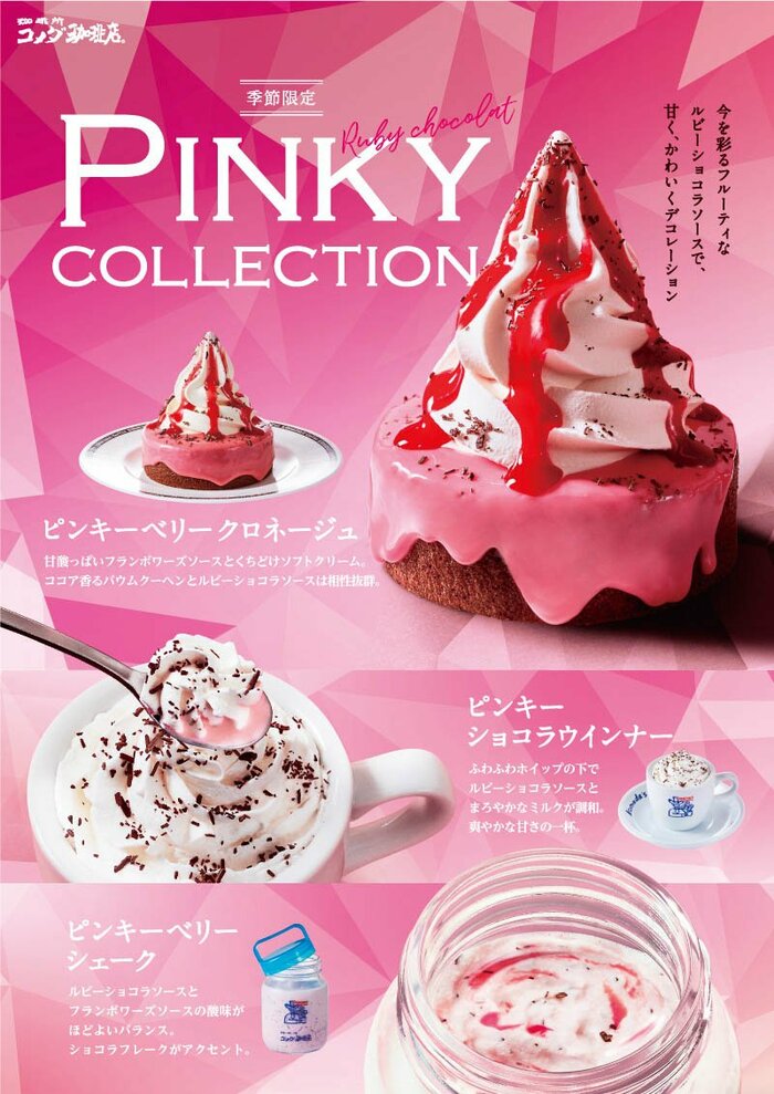 2022年3月16日(水)よりコメダ珈琲店にて販売がスタートした「PINKY COLLECTION」は、ルビーショコラソースを使用したフルーティな季節限定商品です。
