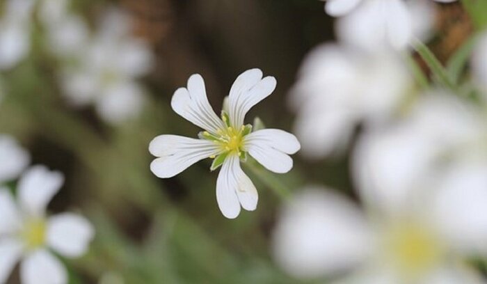 4月~6月にかけて白い花を一面に咲かせるセラスチウム。葉は細かい毛におおわれていて、シルバーリーフとしても人気があります。