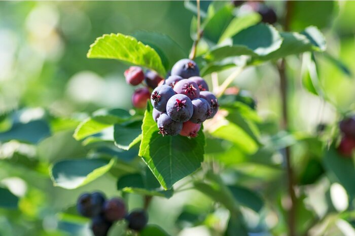 オシャレなシンボルツリーとして、近年人気上昇中のジューンベリー。涼し気な雰囲気がさわやかで、春に咲く白い花や赤い果実、秋には紅葉を楽しめる樹木です。実は収穫することができ、ジャムにして楽しむことも。
