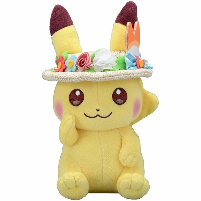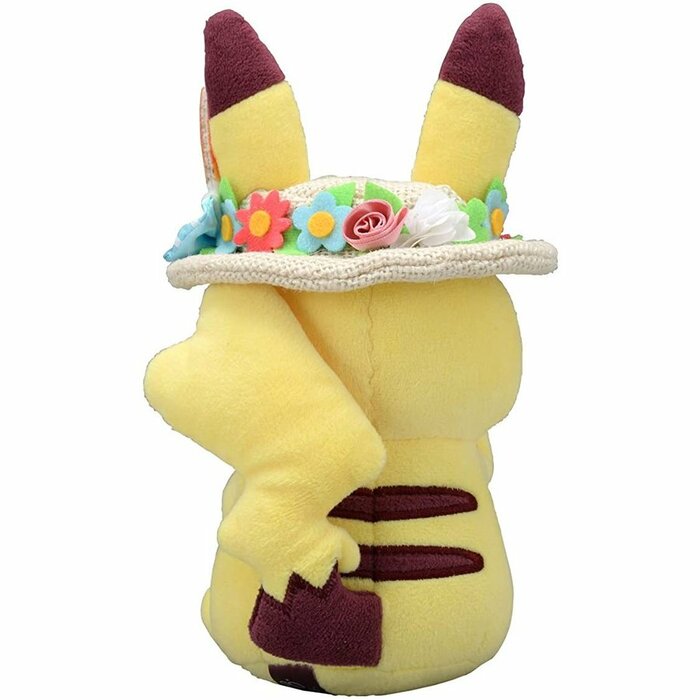 お花をあしらった帽子がよく似合う、ピカチュウのぬいぐるみ。いつもと違うデザインは、贈り物にも最適です。