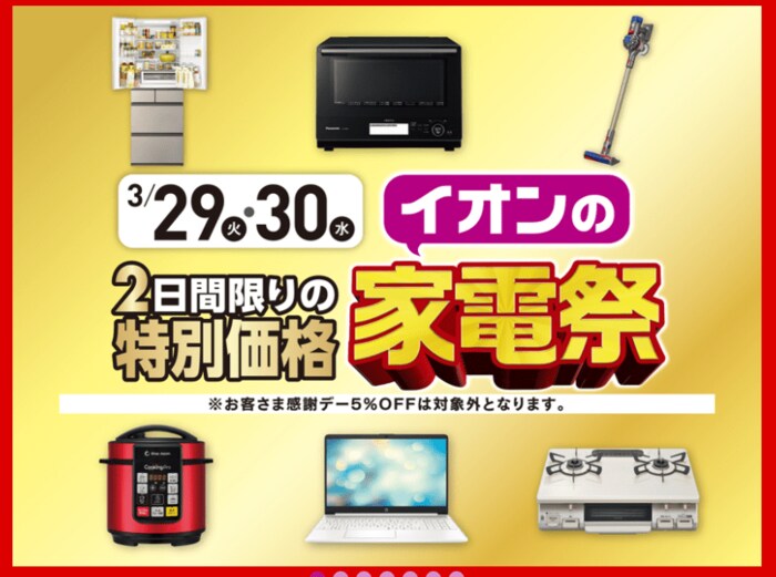 イオンは2022年3月29日・30日の2日間限定で、家電を対象としたセールを行います。