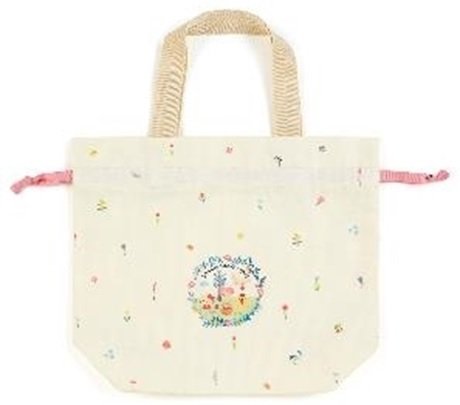 巾着仕様のトートバックです。ちょっとしたお出かけや、サブバックとして便利に使えます。ピンクのリボンも可愛く、ギフトバッグとしてもおすすめのアイテムです。