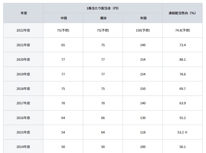- 2020年12月期の中間配当と期末配当:77円・77円
