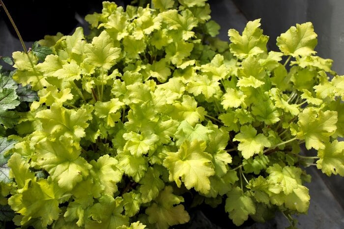 ユキノシタ科の多年草。黄や緑、オレンジ、濃い紫など葉色のバリエーションが多いカラーリーフプランツ。日陰にも強く、シェードガーデンにもオススメです。花の少ない晩秋から冬の時期には紅葉も楽しめます。※参考価格:500~700円(3号ポット苗)
