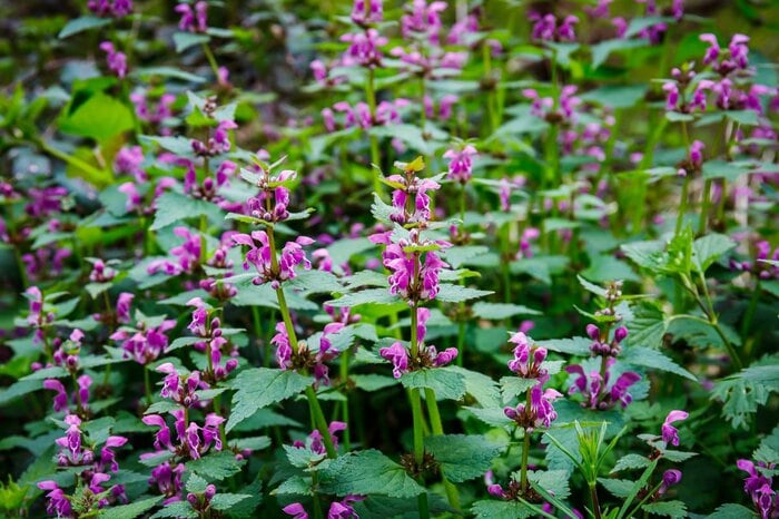 シソ科の多年草のラミウムは、ホトケノザの仲間。ナチュラルでシックな雰囲気が特徴です。5~6月に赤紫や黄色のカワイイ花を咲かせます。品種によっては、斑が入る葉もオシャレ。半日陰でも育てられる植物です。※参考価格:200~400円前後(3号ポット)
