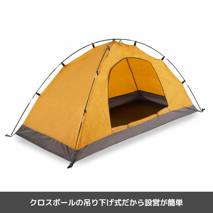 「このスペックをこの価格で」という想いを実現させた1人用ドーム形テントです。エントリーモデルとしても適しているクロスポールタイプの吊り下げ式で、設営も簡単でセカンドテントにもちょうどいい仕様。