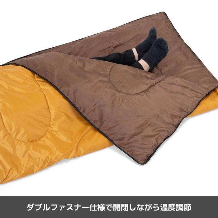 封筒型タイプのスタンダードシュラフです。アースカラーの配色が映えるデザインで、アウトドアはもちろん、車中泊、災害時にも活躍する一つは持っていたいアイテムです。