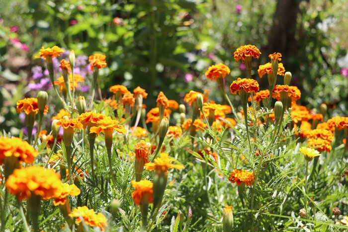 オレンジ、黄色の鮮やかな花が、春から秋まで長く咲くマリーゴールド。花弁がフリル状の八重のマリーゴールドが定番人気ですが、カーネーションのように咲く品種や、黄色の一重のマリーゴールドも大変かわいらしい印象です。