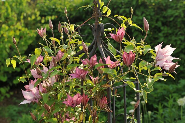 オベリスクはアイアンで塔のように組まれた支柱です。オベリスクにツル性の植物をからませて育てます。花の塔として庭のシンボリックなアイテムになり、華やかさを演出してくれます。