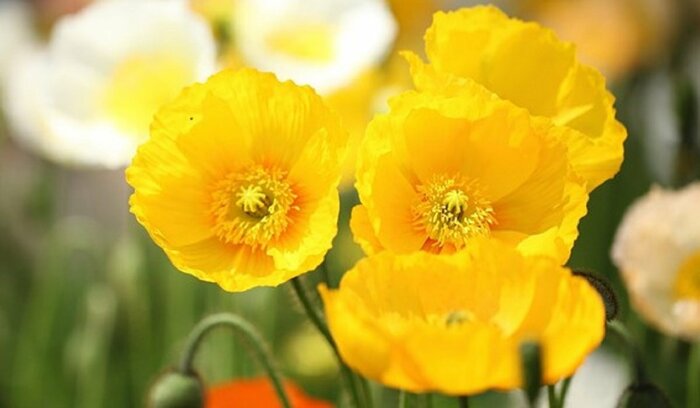 世界の比較的寒い地域に自生する多年草のアイスランドポピー。夏の暑さにはやや弱いので、日本では一年草として扱います。和紙のような花や毛でおおわれたツボミの質感がユニークです。※参考価格:400~800円前後(3号ポット苗)
