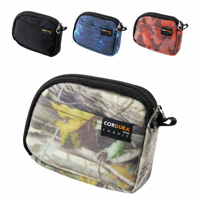 過酷な作業現場や軍服に使用されている、コーデュラ素材のコインケース。生地が薄いのに、普通のナイロンよりも耐摩耗・耐久性に優れた丈夫なつくりが特徴です。内側にはお札をしまえるポケット付きで、外ポケットにはカードを入れておけます。