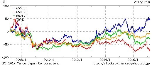 一方、営業利益率の目標については、重電システムが8%以上(2016年3月期実績4%)、産業メカトロシステムが13%以上(同12%)、情報通信システムが5%以上(同3%)、電子デバイスが7%以上(同8%)、家電が6%以上(同7%)とされており、重電システムを除くと現状並みの利益率を確保していく方針が示されています。