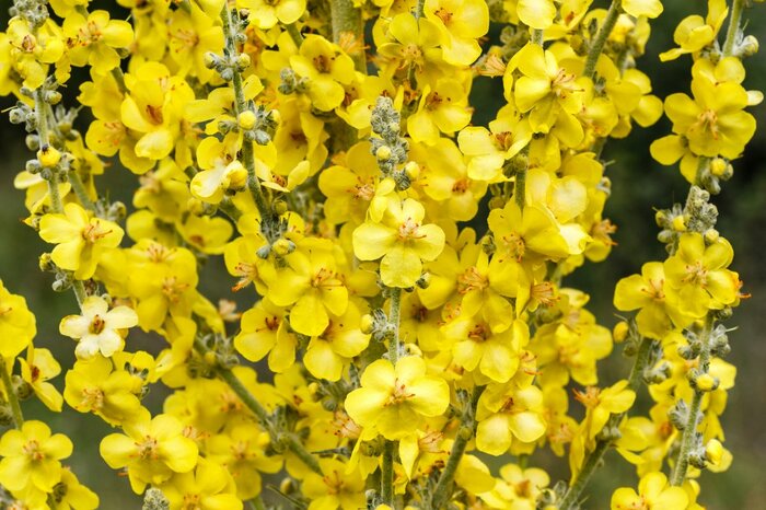 縦並びのつぼみが穂状に連なる宿根バーバスカム。バラバラと次々に開花していき、花数も多いため長い期間花が楽しめます。