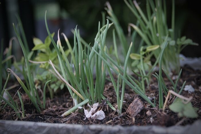 スーパーで売られている小ネギの根をそのまま植えても育つほど丈夫な小ネギ。小ネギの根元部分を10センチほど切り、1~3センチ間隔でプランターに植えておきましょう。上手に育てれば何度も収穫できますよ。