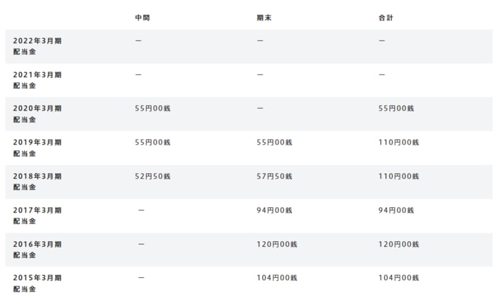ただ、JALの2020年3月期の期末配当と、2021年3月期の中間・期末配当、2022年3月期の中間配当はいずれも0円でした。